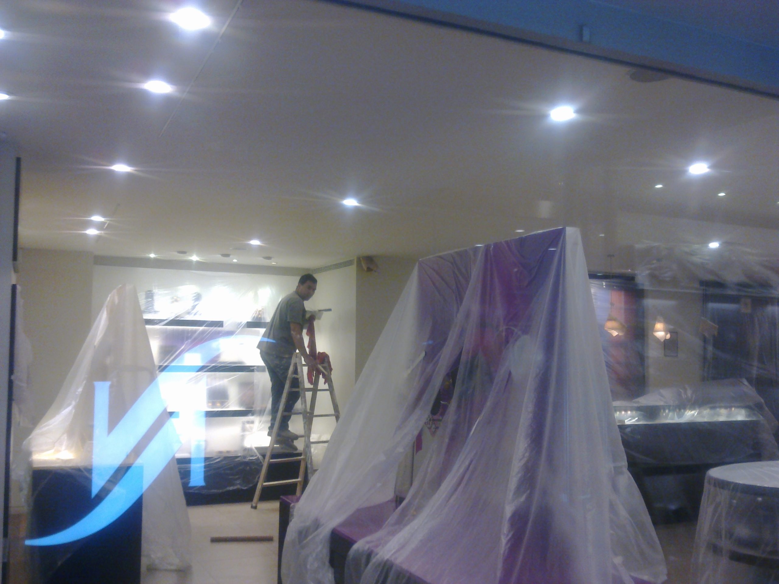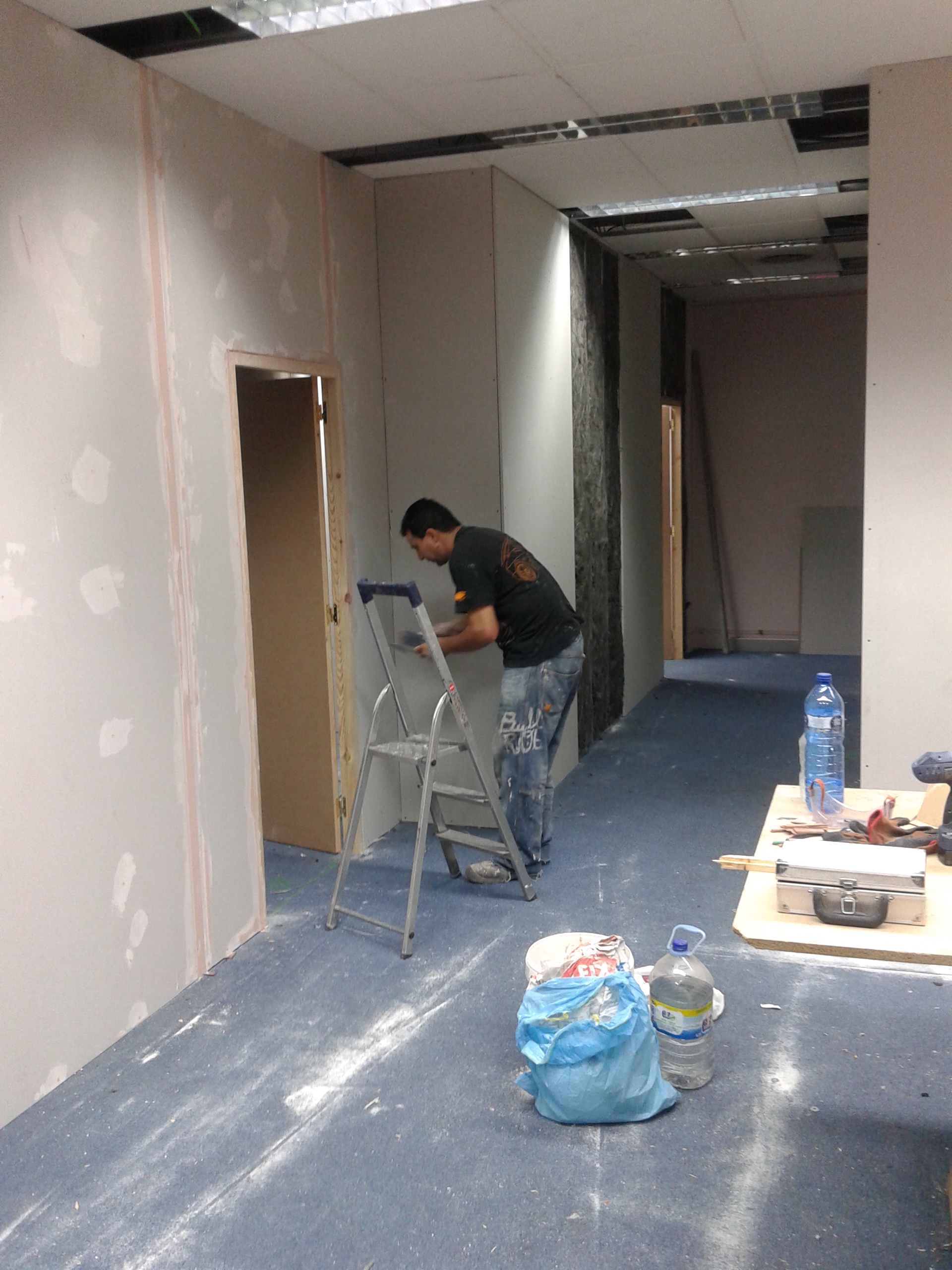 Al partir de una nave vacía nos encargamos de todo lo que era reforma y construcción del local y todo lo que ello conlleva, albañilería, carpintería, lampistería, todas las instalaciones, y pintura.