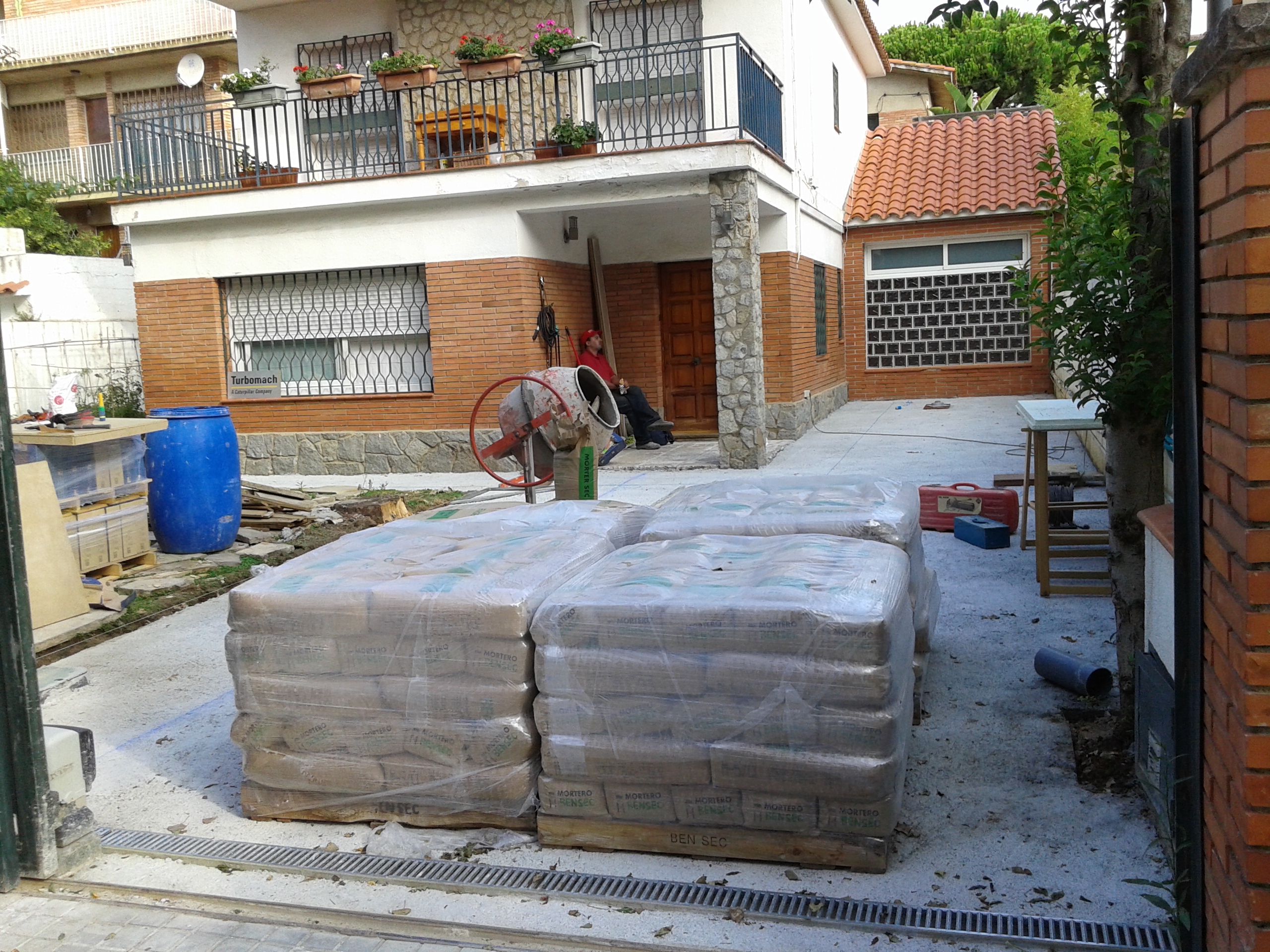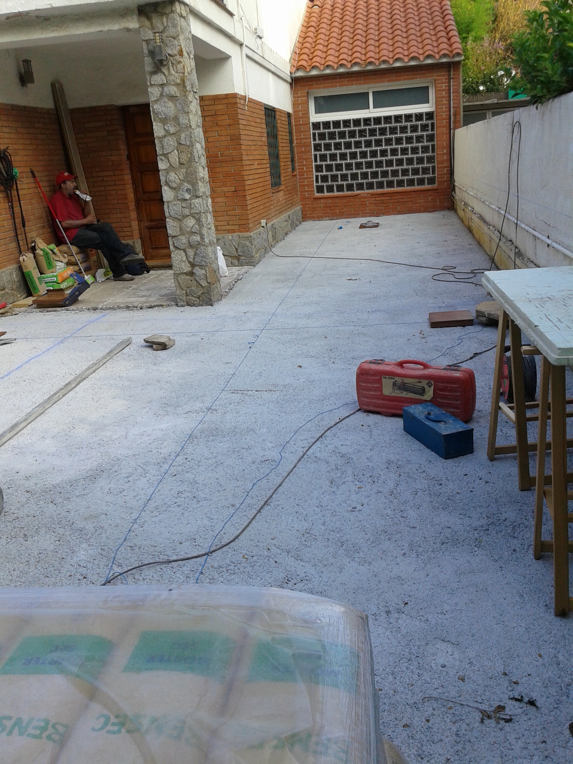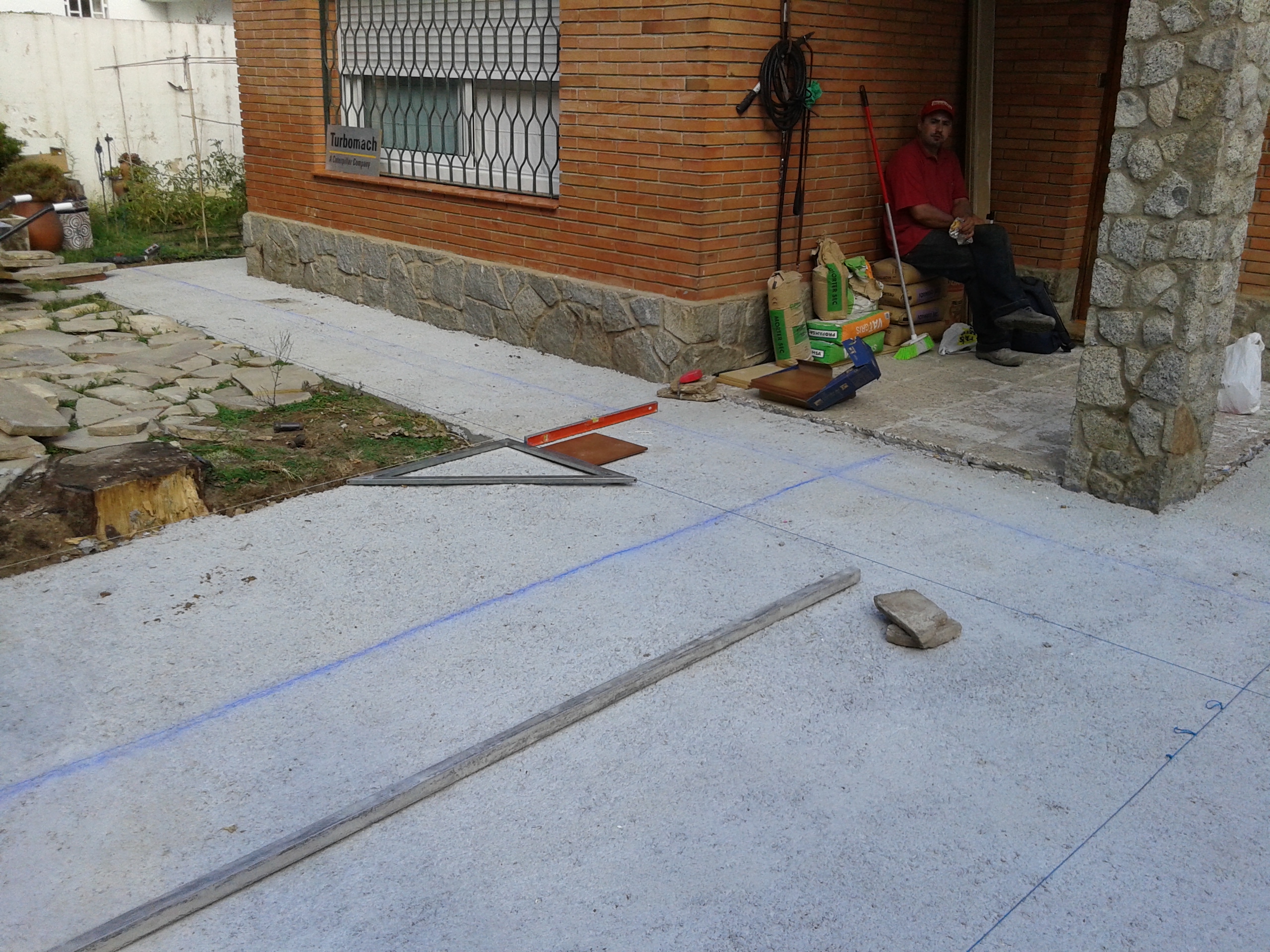 Para ello se aplano y se preparó el terreno para colocar una plancha de hormigón que  soportará el peso de los coches, calculando las inclinaciones para el agua y su recogida, y por último se le dio un acabado de azulejo exterior a gusto del cliente.