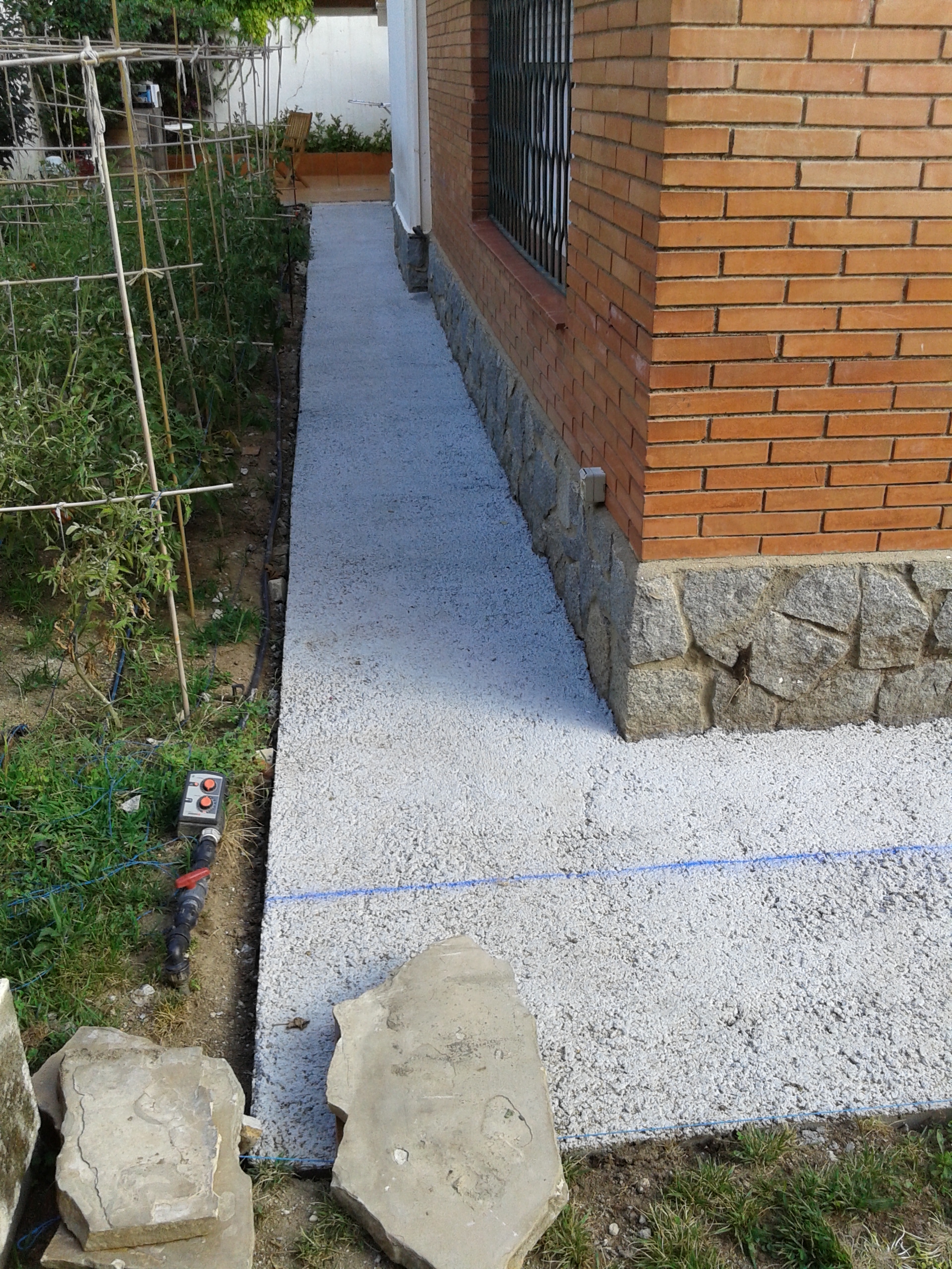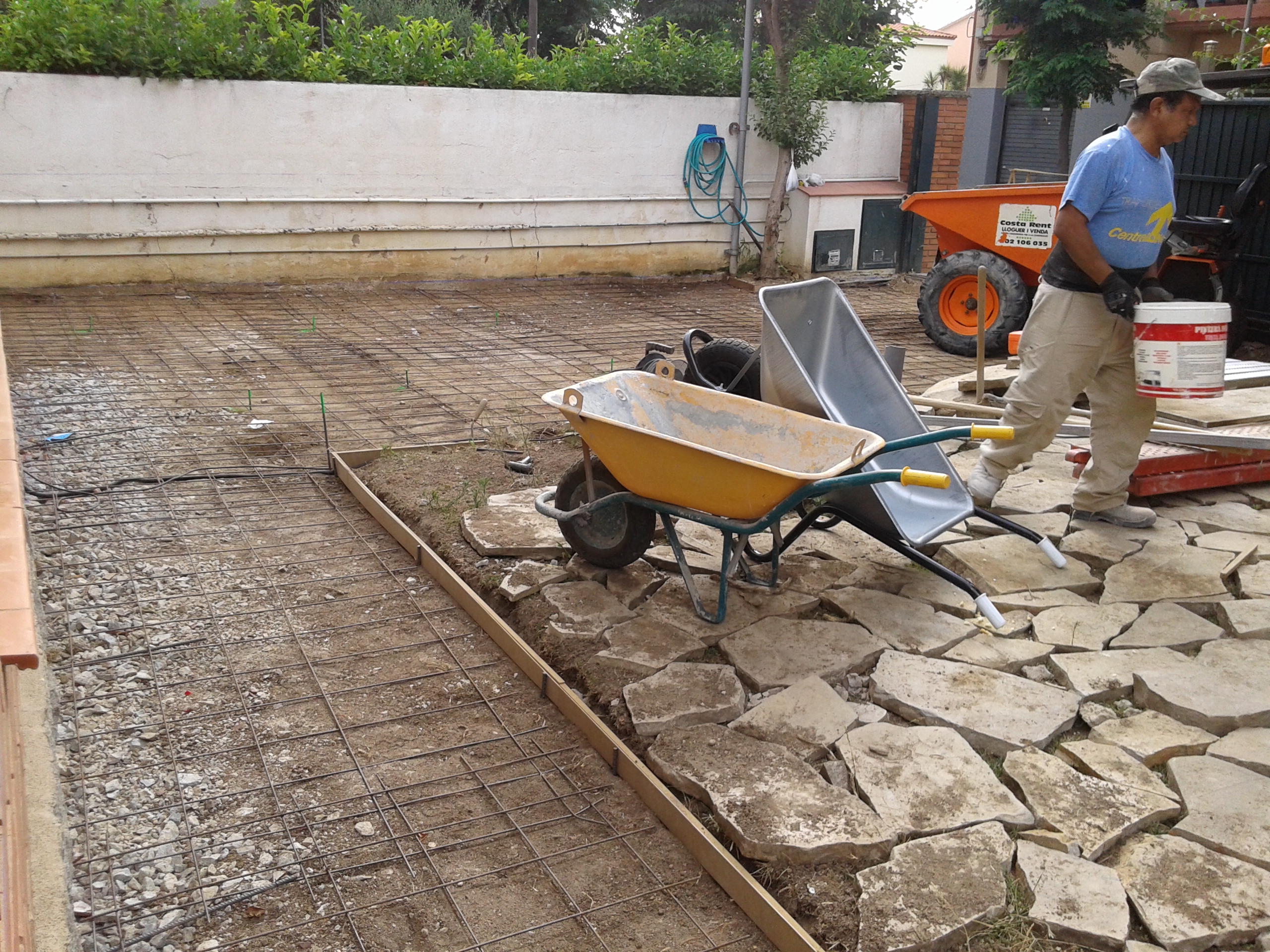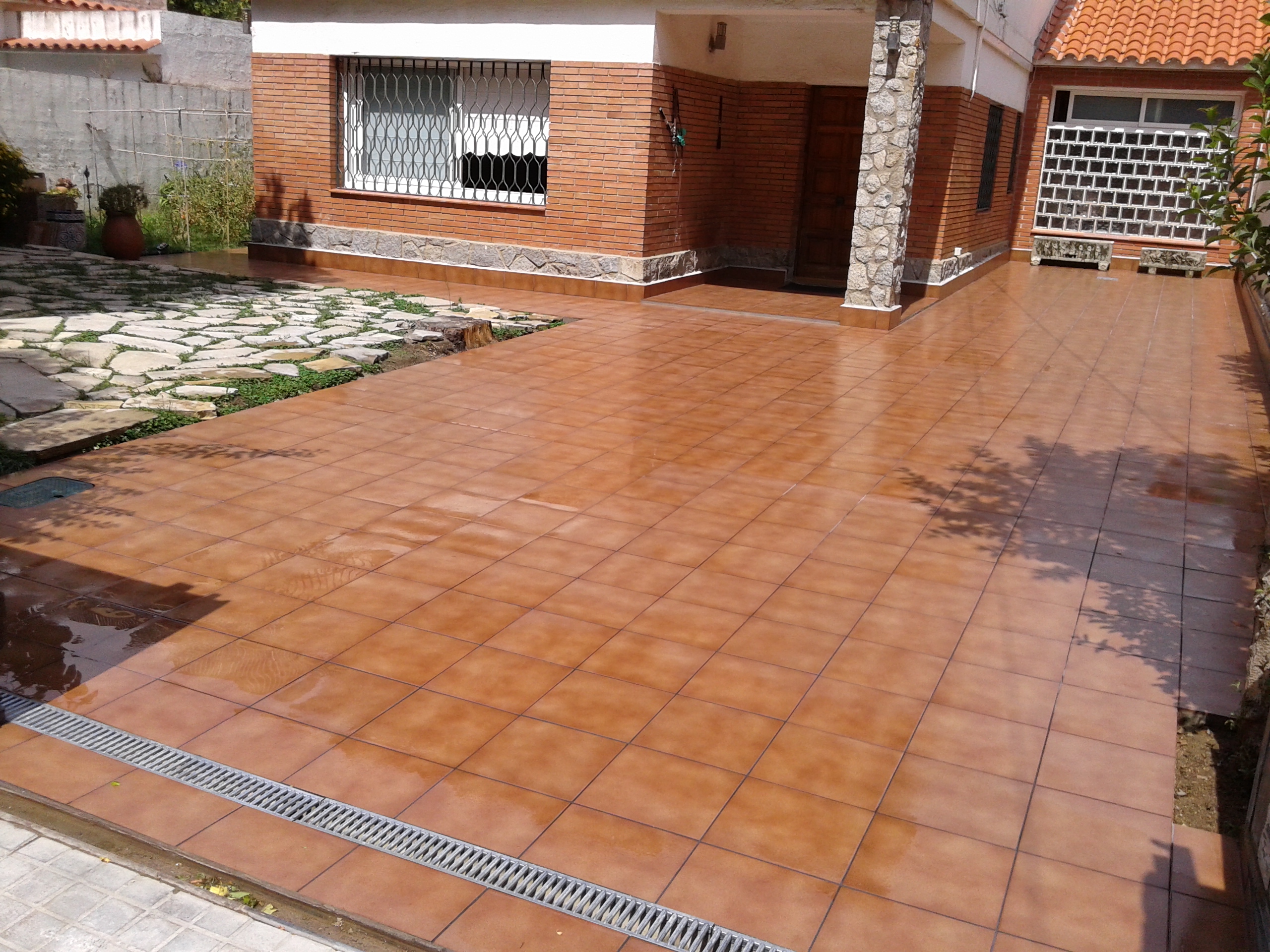 Para ello se aplano y se preparó el terreno para colocar una plancha de hormigón que  soportará el peso de los coches, calculando las inclinaciones para el agua y su recogida, y por último se le dio un acabado de azulejo exterior a gusto del cliente.
