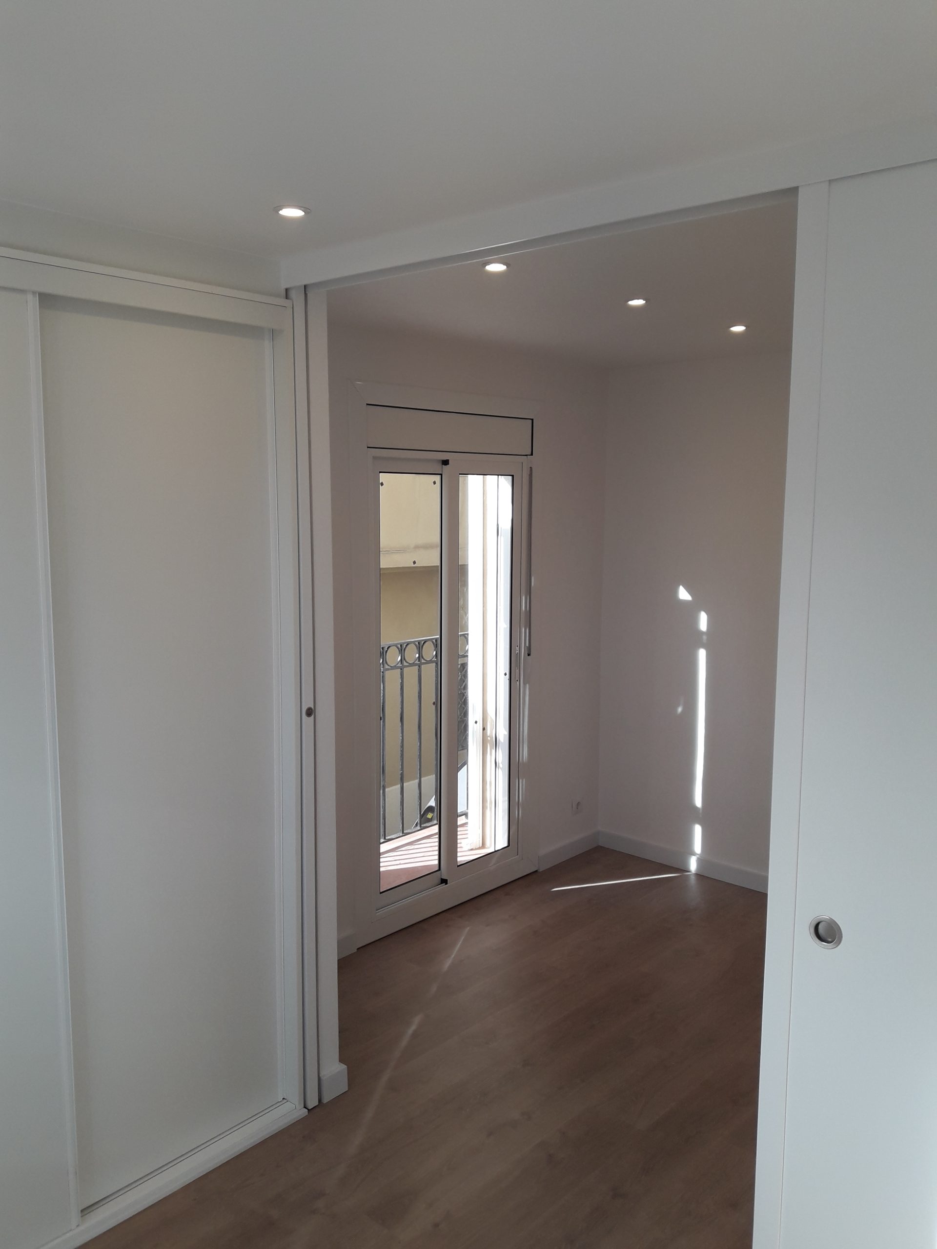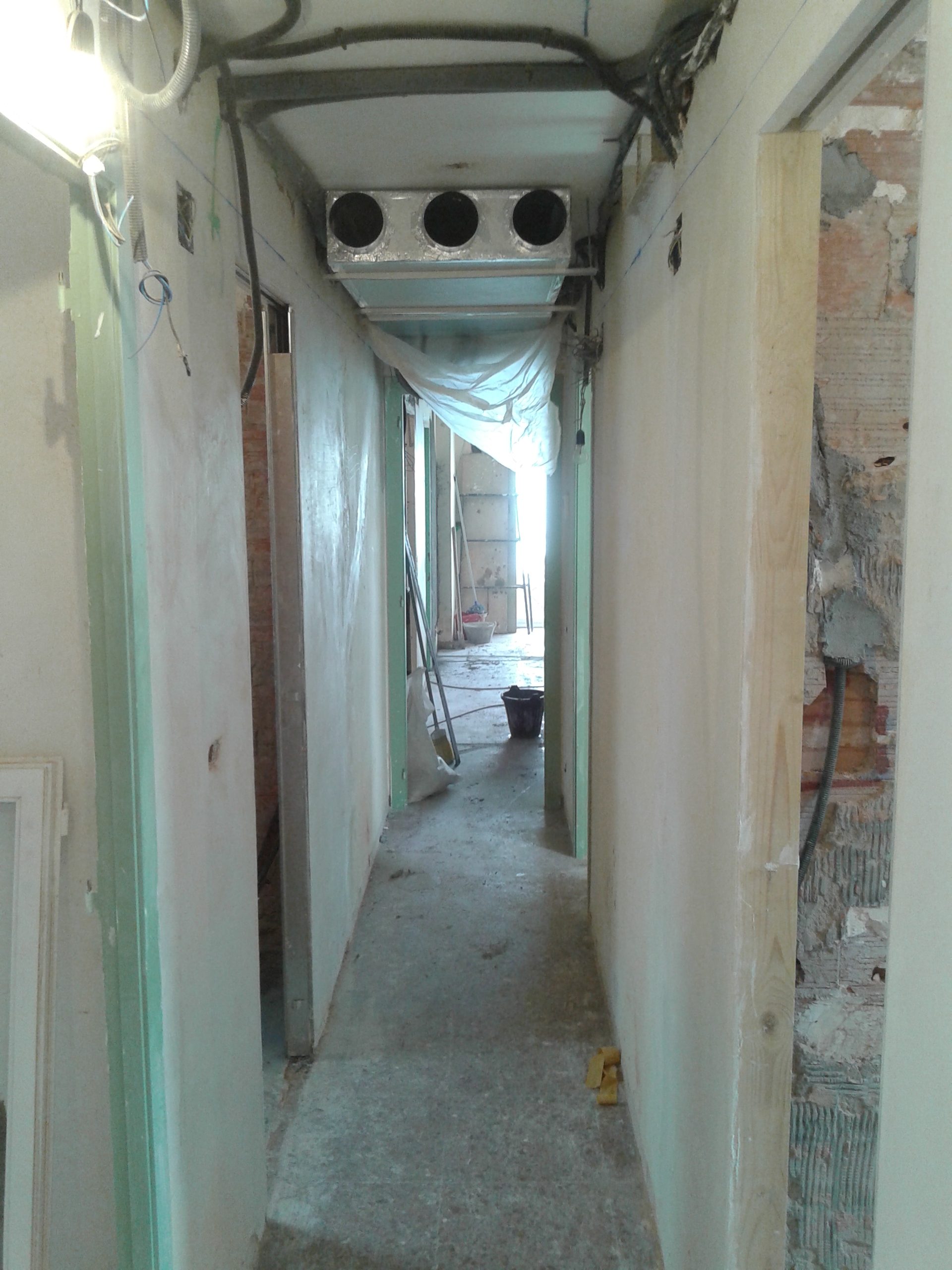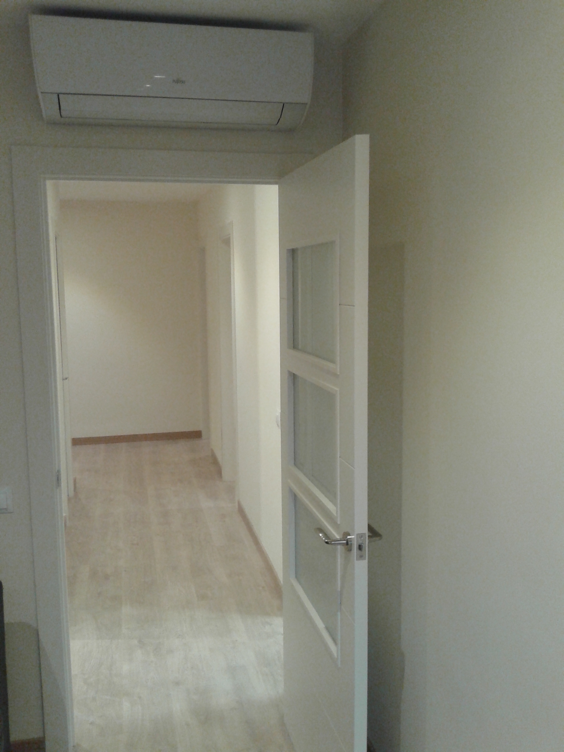 Llevamos a cabo nueva instalación eléctrica, falsos techos, nuevos suelo de parqué y baldosas en baños y cocina, pintado y reparación de paredes, cambiamos todas las puertas del piso, he hicimos para las habitaciones unos armarios empotrados hechos a medida. También se hizo la instalación de aire acondicionado.
