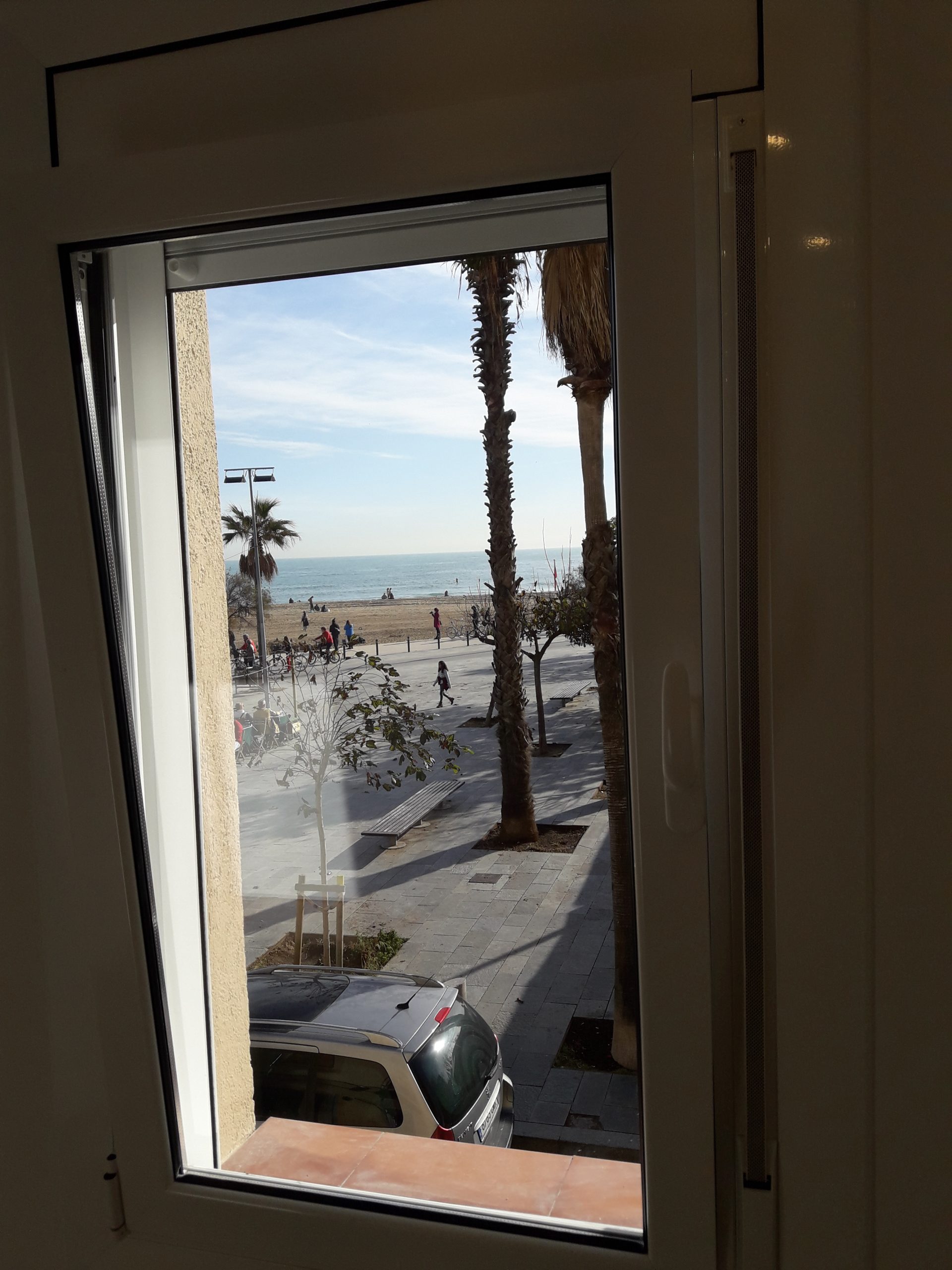 Esta, fue reforma integral que hicimos en un apartamento en la Barceloneta, se trataba de un piso muy pequeño que constaba de una cocina, un baño, un pequeño comedor y una habitación. Para que pareciera más grande y aprovechar un poco el espacio lo que hicimos fue tirar la pared de la habitación y poner una gran puerta corredera para poder dejarla abierta si se quisiera y ganar en espacio y luz.