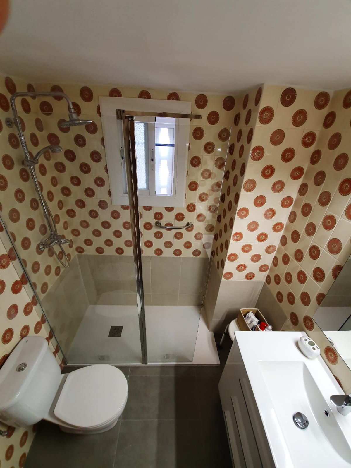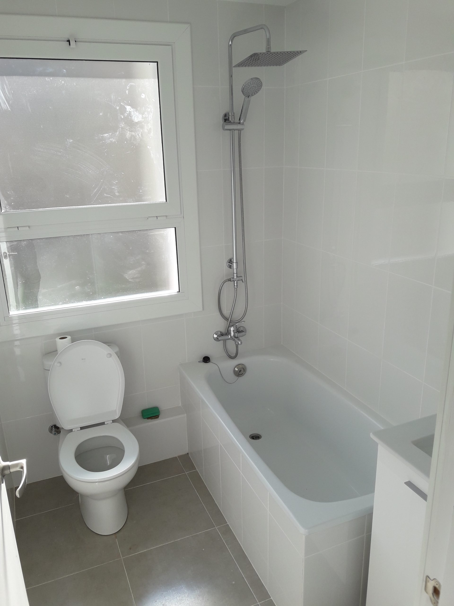 En este piso se tenían que reformar dos baños, se cambiaron los dos completamente, desde las baldosas hasta los muebles y sanitarios todo elegido por el cliente. En uno de los baños se cambió toda la instalación para poder hacer cambio de bañera por plato de ducha, mientras que en el otro baño se puso plato de ducha nuevo tal y como ya lo tenían anteriormente.