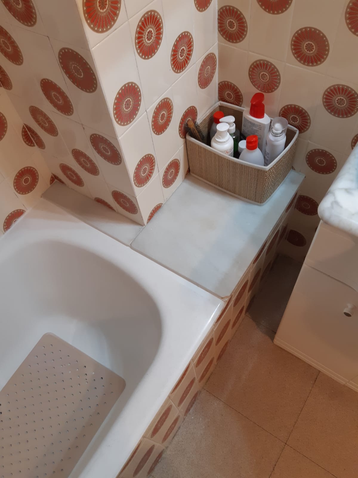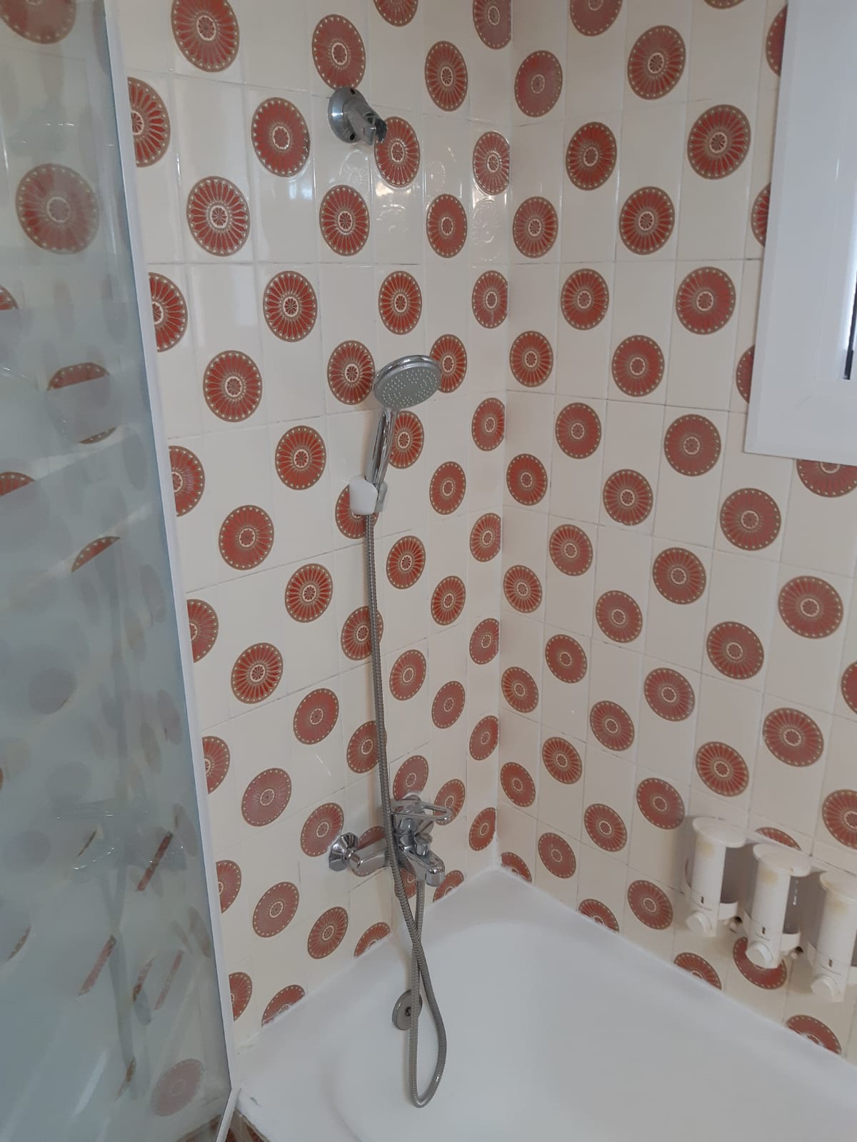 En esta ocasión la obra era muy sencilla, simplemente el cliente quería hacer un cambio de bañera por un plato de ducha y cambiar el mueble del baño, no quería cambiar las baldosas originales, así que nuestra propuesta fue hacer el cambio solo de las baldosas que cubrían la bañera, a gusto del cliente.