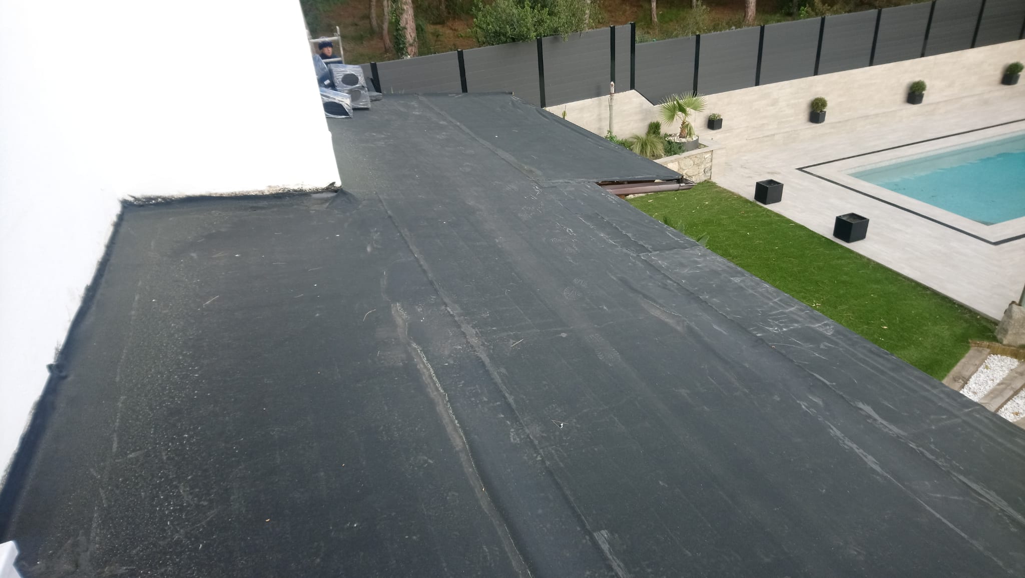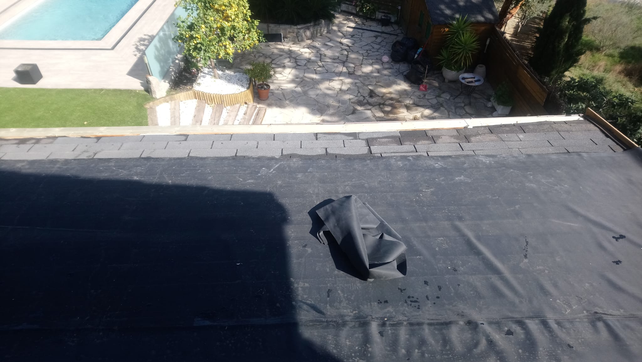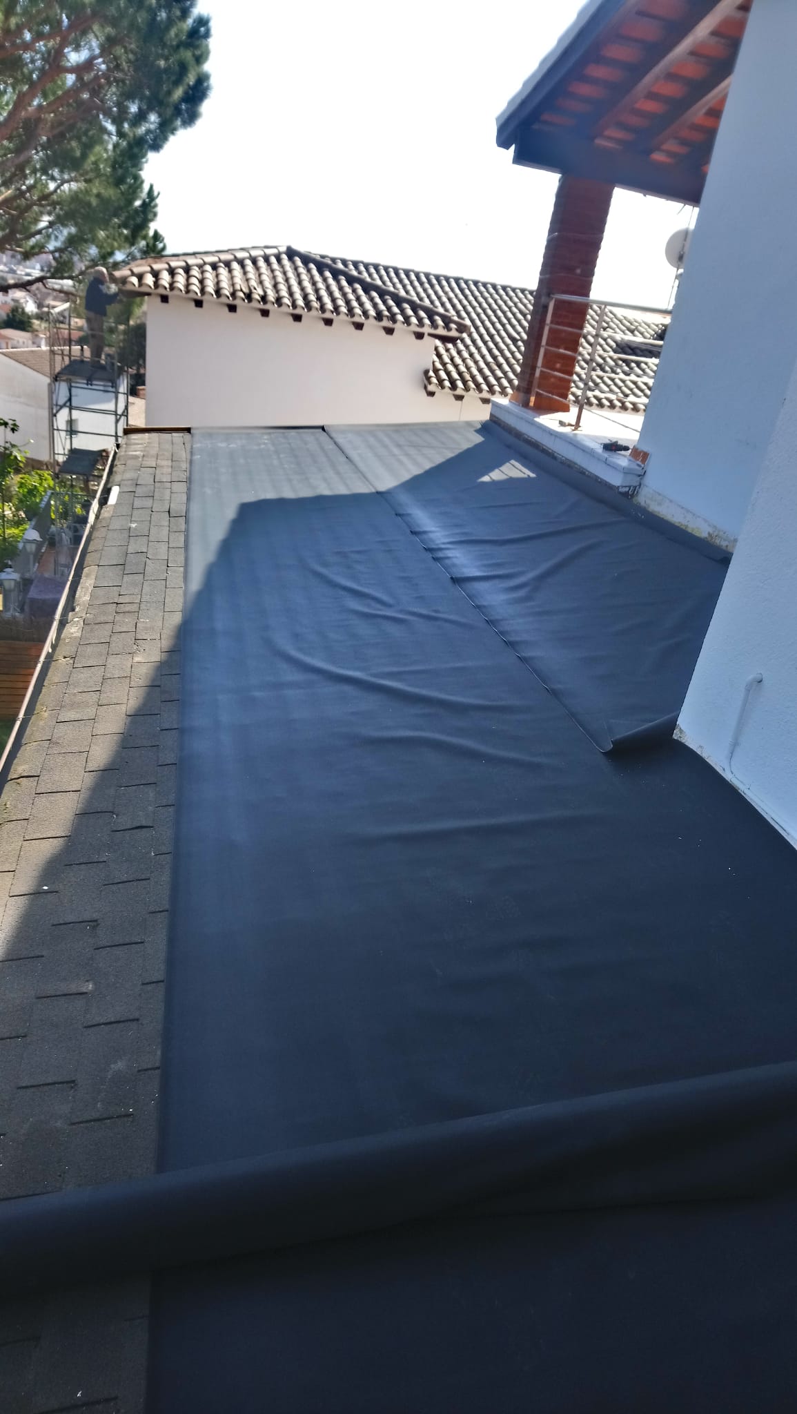 En este proyecto se trataba de rehacer un tejado, para ello utilizamos una tela asfáltica con butilo impermeabilizada, sobrepuesta al tejado ya existente e hicimos el acabado con unas tejas plásticas cubriendo toda la zona impermeabilizada.